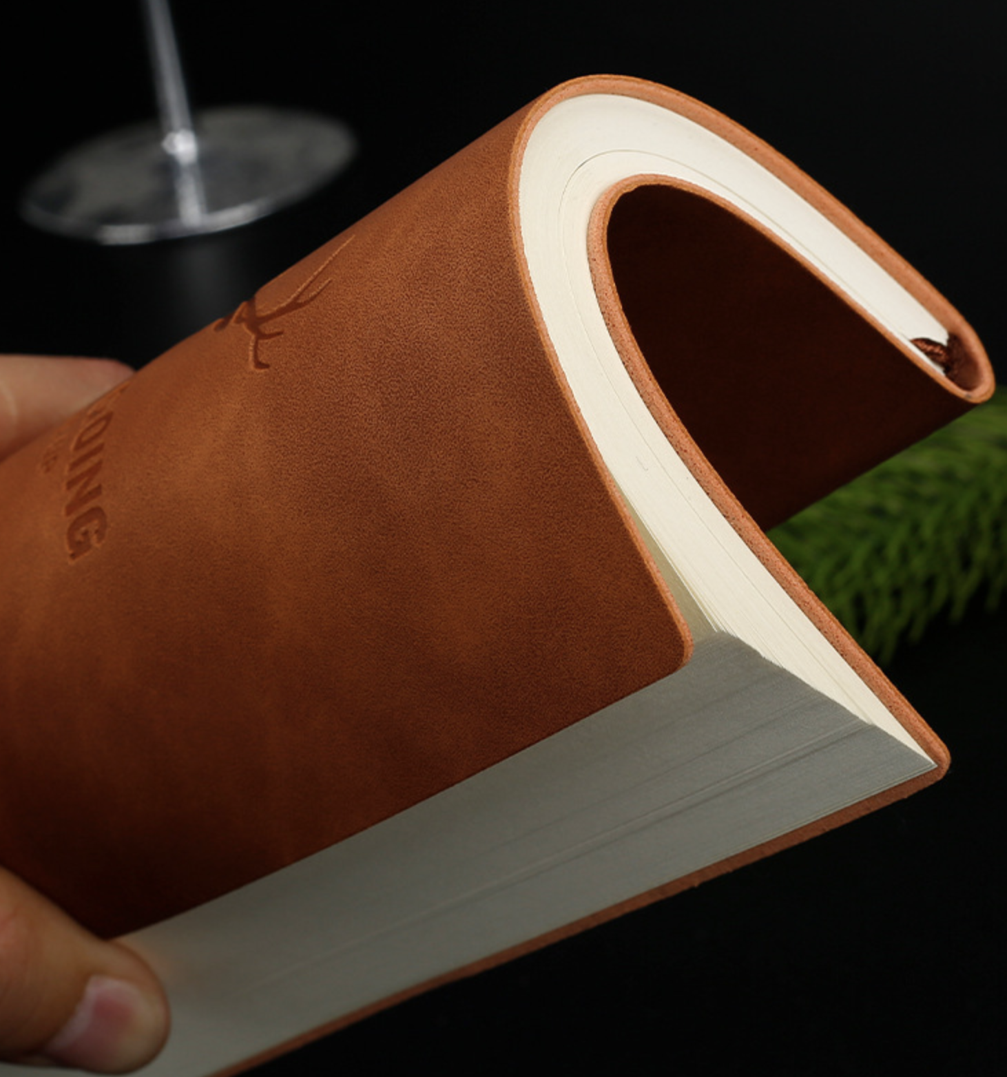 Debossed logo on the genuine leather cover
